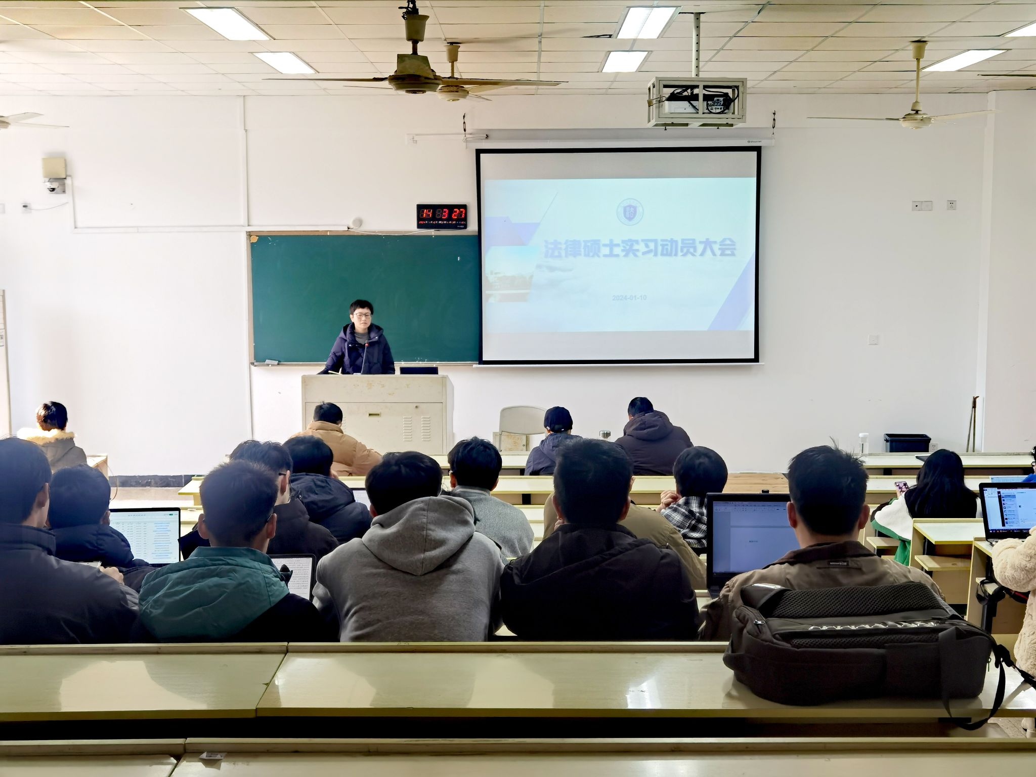 2024年1月10日下午,黄色视频 在北校区2号楼201召开2022级法律硕士实习动员大会,会议由黄色视频 副院长周一颜主持,法律硕士学位点负责人肖磊教授、学院各实践基地联络员、教学科、学生科及22级法律硕士研究生出席了本次动员大会。
