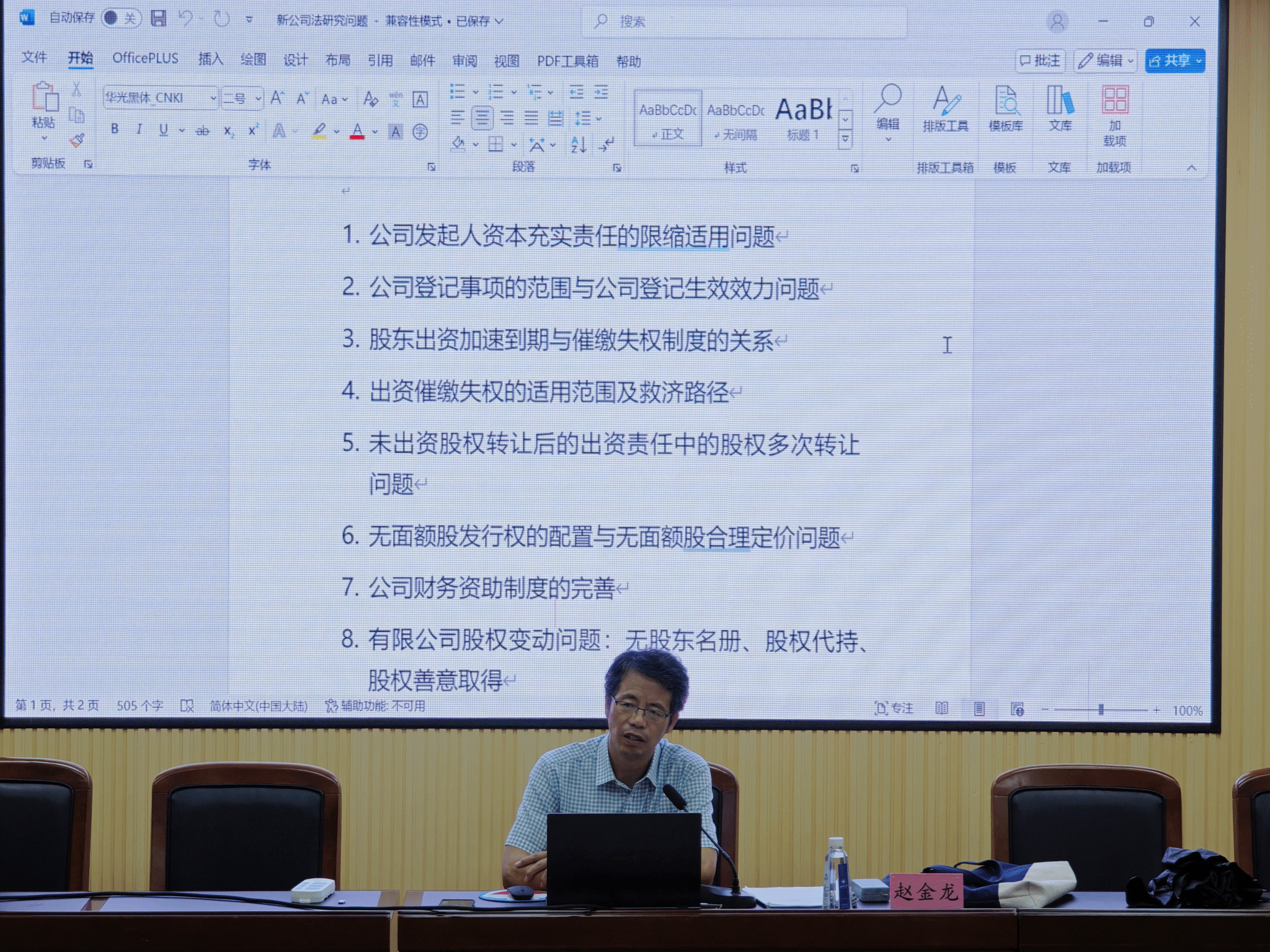 9月25日晚,黄色视频 法学前沿系列讲座课开讲,由黄色视频 赵金龙教授作主体为《数字技术应用的公司法回应:以电子股东会议法制化为中心》的讲座。本次讲座吸引了全院师生50余人到场学习。