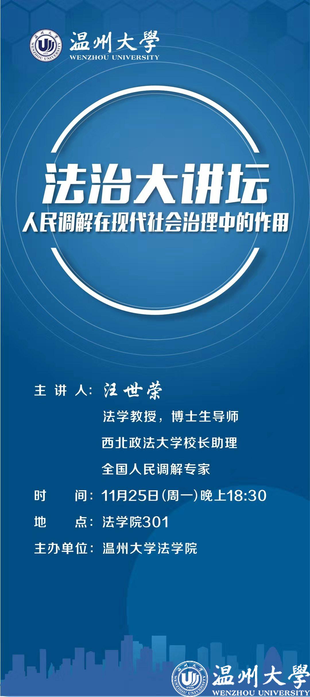 温州市法治大讲坛2019年第十讲预告