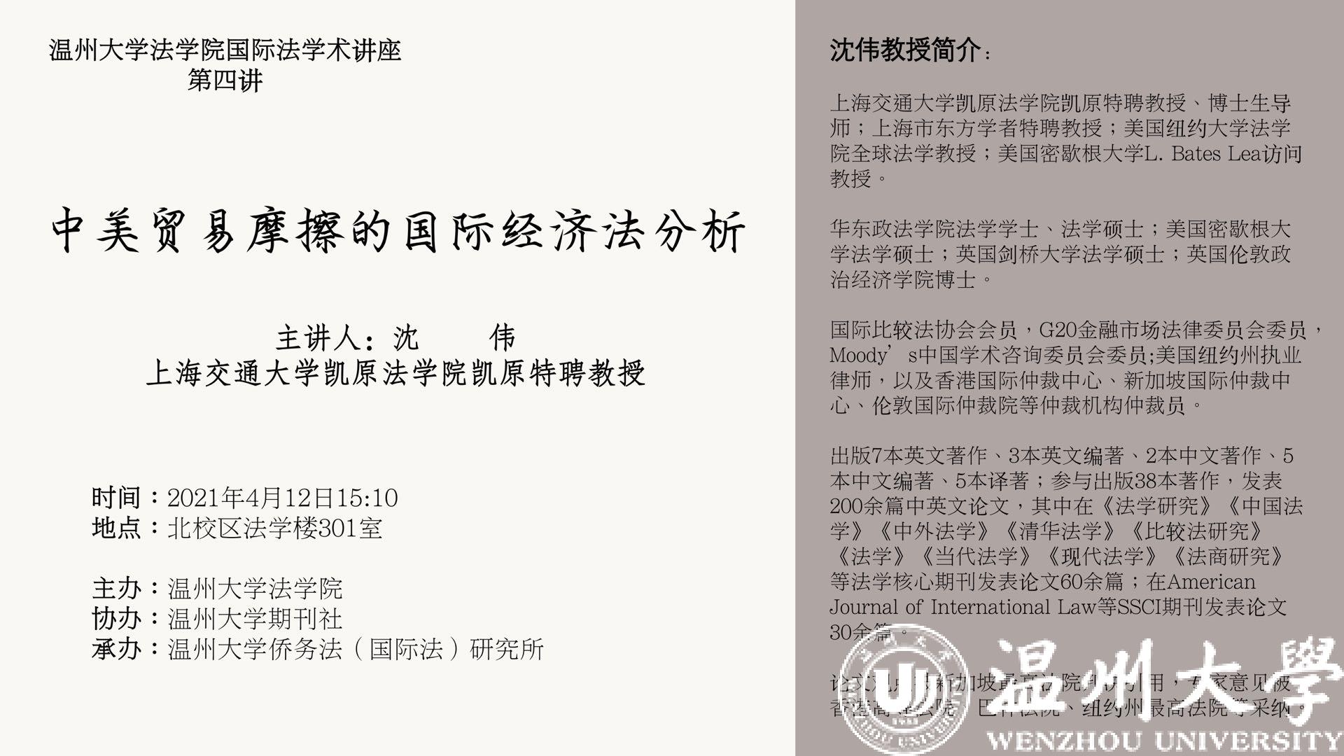 黄色视频 国际法学术讲座第四讲——《中美贸易摩擦的国际经济法分析》