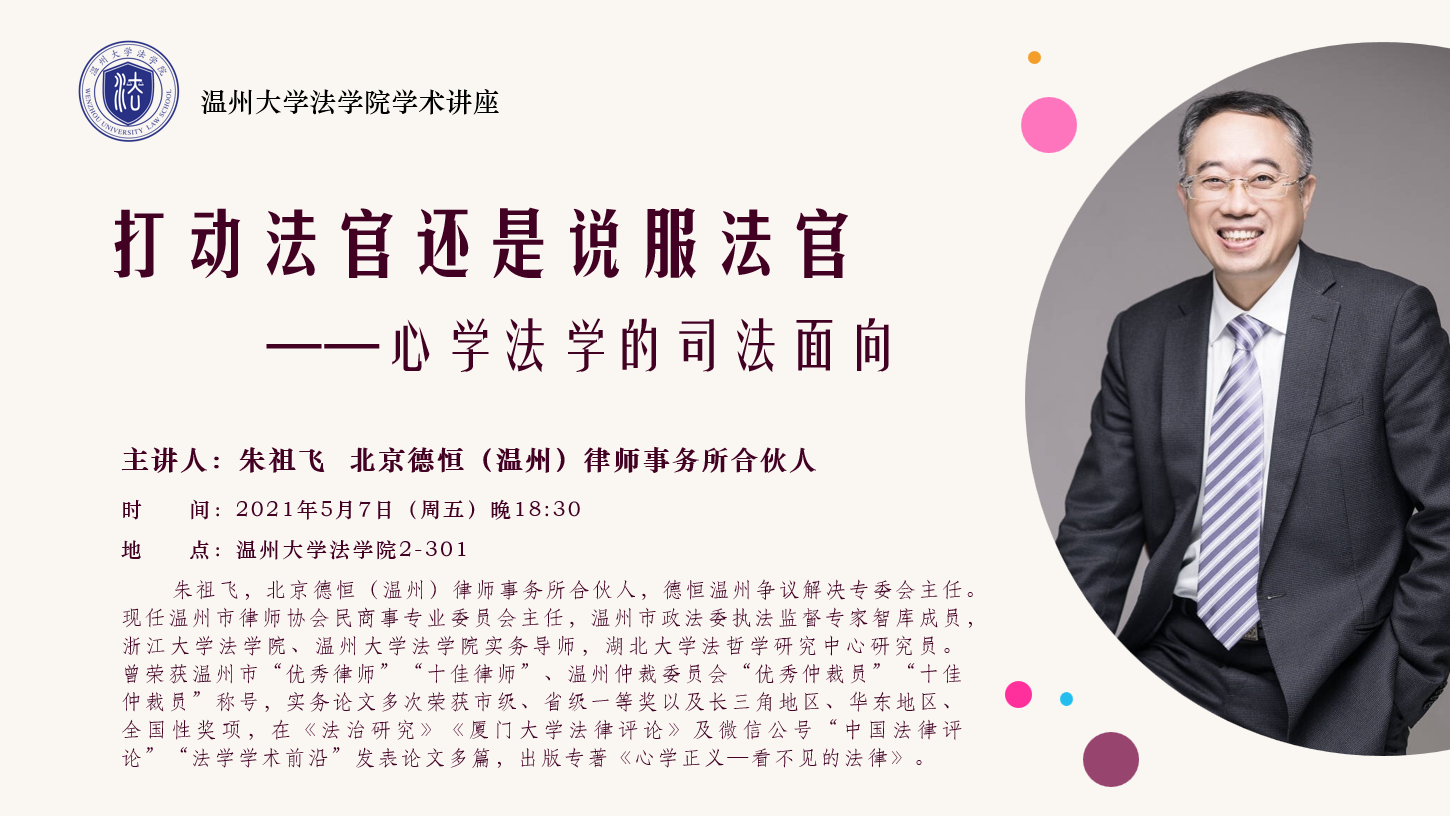 5.7学术讲座预告——《打动法官还是说服法官——心学法学的司法面向》