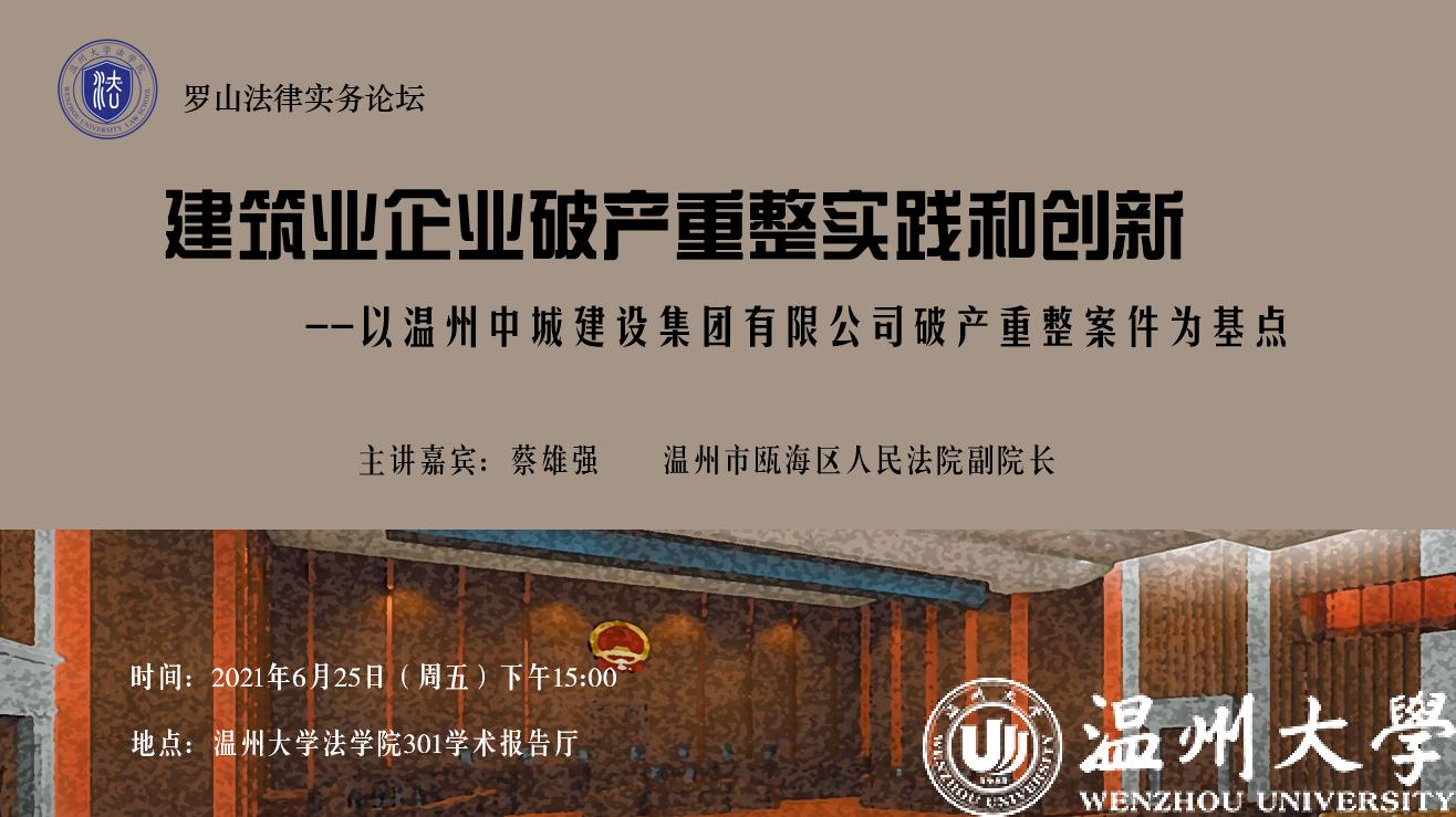 罗山法律实务论坛预告——“建筑业企业破产重整实践和创新——以温州中城建设集团有限公司破产重整案件为基点”
