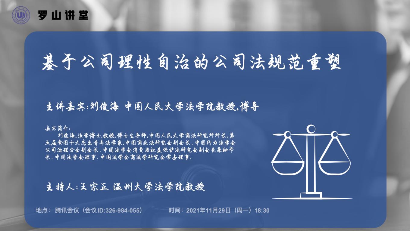 罗山讲堂预告 基于公司理性自治的公司法规范重塑