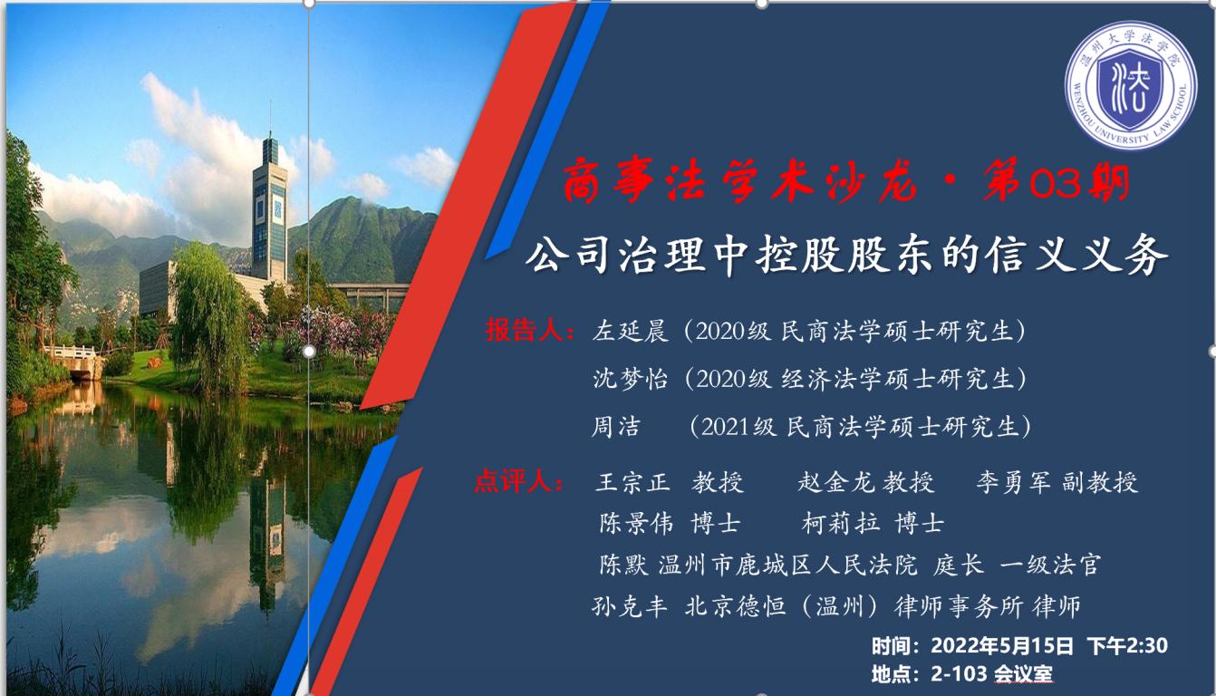 商事法学术沙龙·第03期:公司治理中控股股东的信义义务
