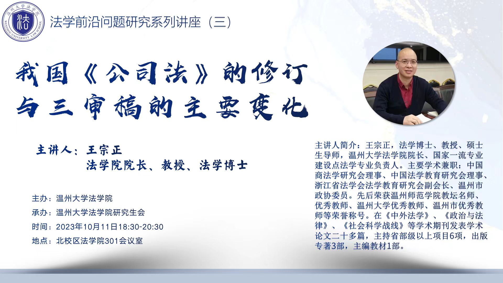 王宗正:我国《公司法》的修订与三审稿的主要变化