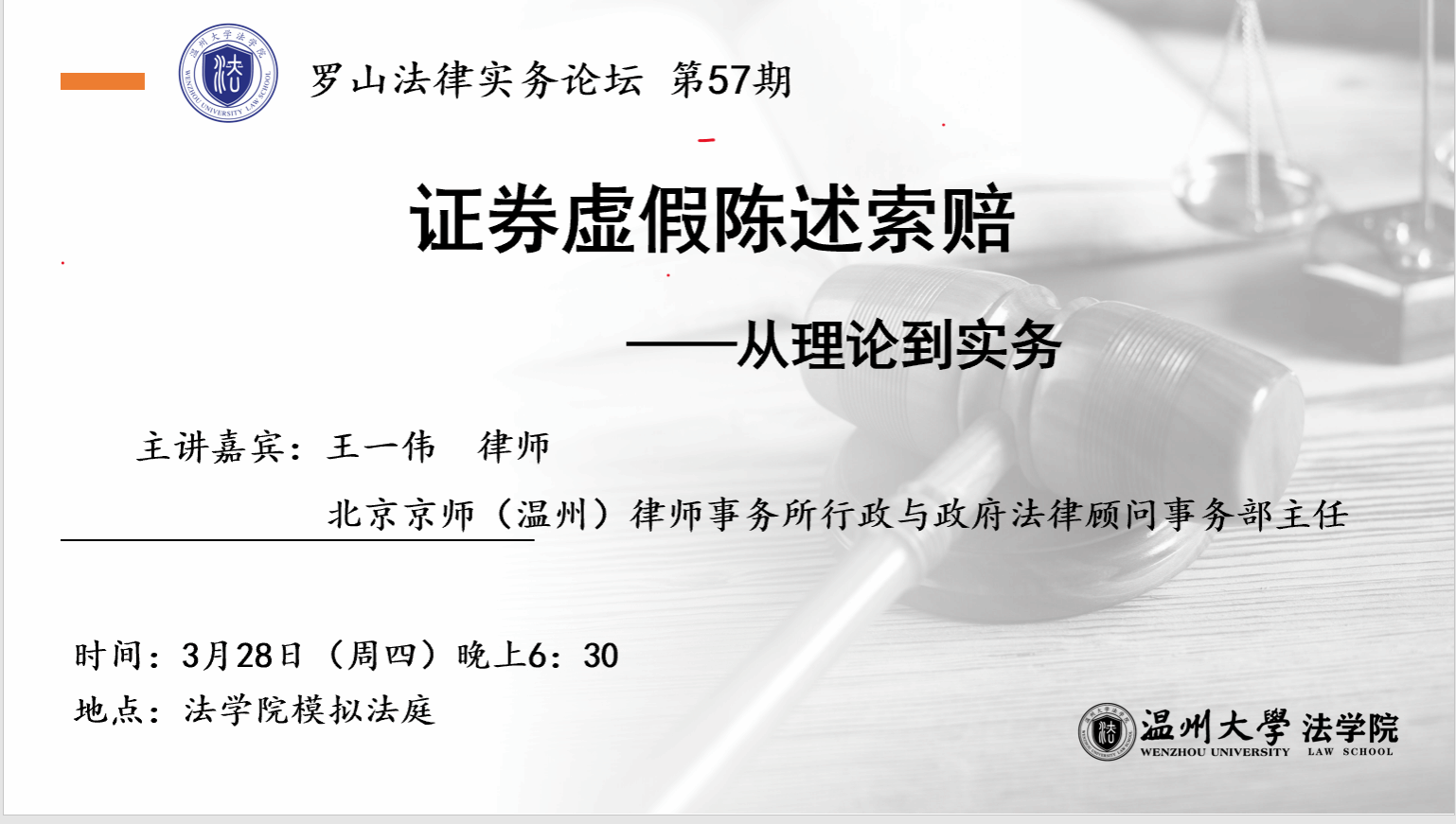 讲座预告丨罗山法律实务论坛 第57期:证券虚假陈述索赔——从理论到实务
