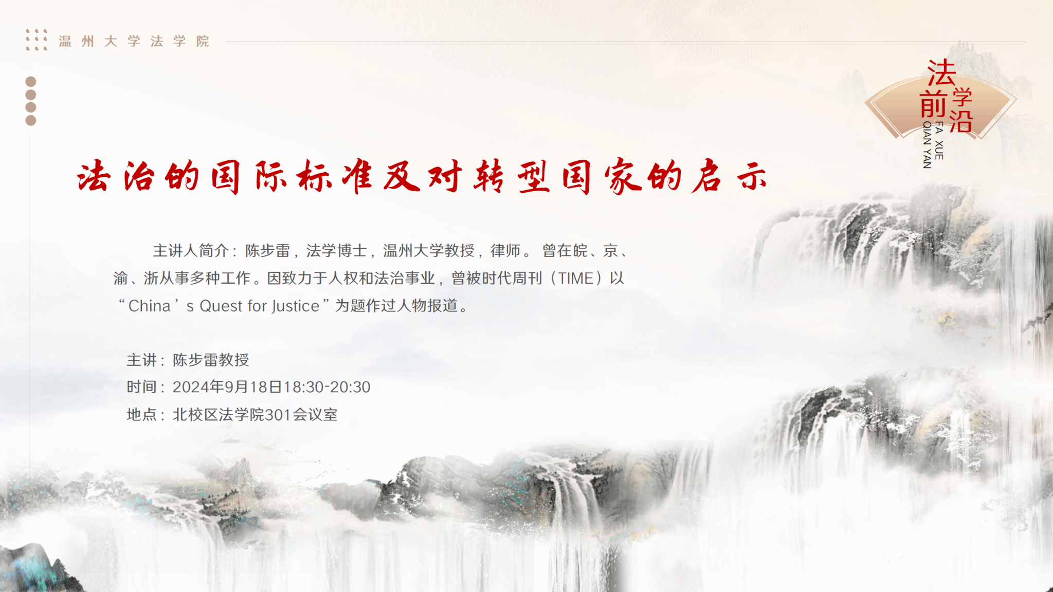 讲座预告|9月18日法学前沿第2讲:法治的国际标准及对转型国家的启示(主讲人:陈步雷)