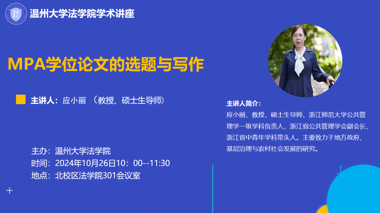 讲座预告|10月26日MPA学位论文的选题与写作(主讲人:应小丽)