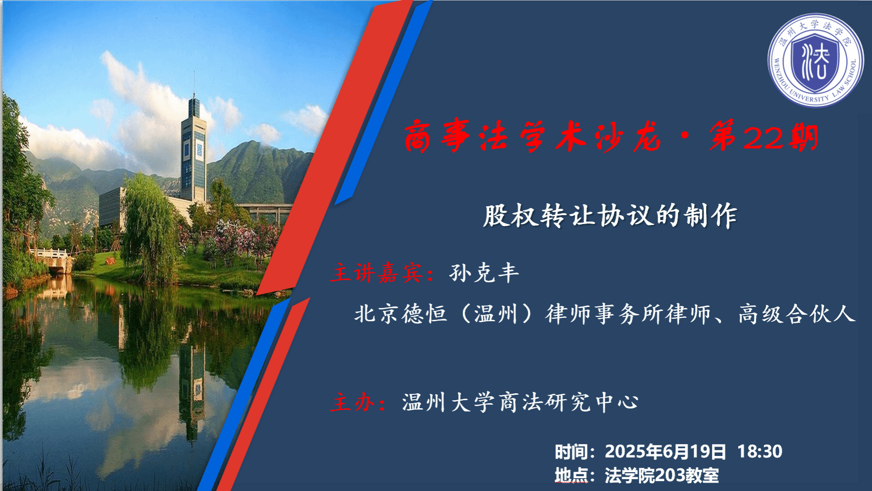 讲座预告|商事法学术沙龙·第22期 股权转让协议的制作