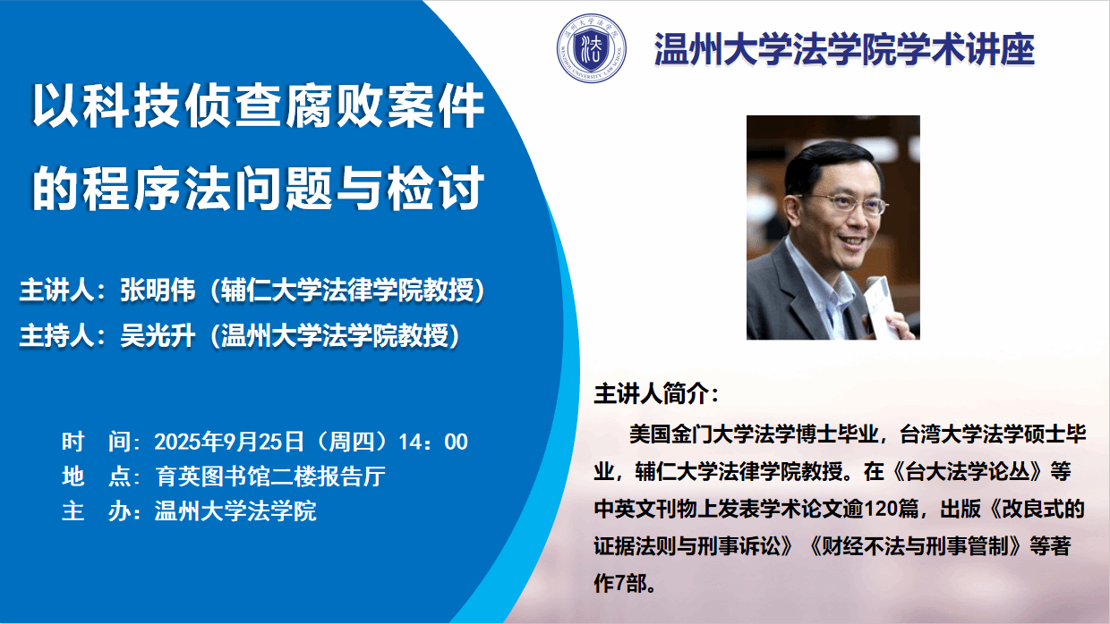 讲座预告|张明伟:以科技侦查腐败案件的程序法问题与检讨
