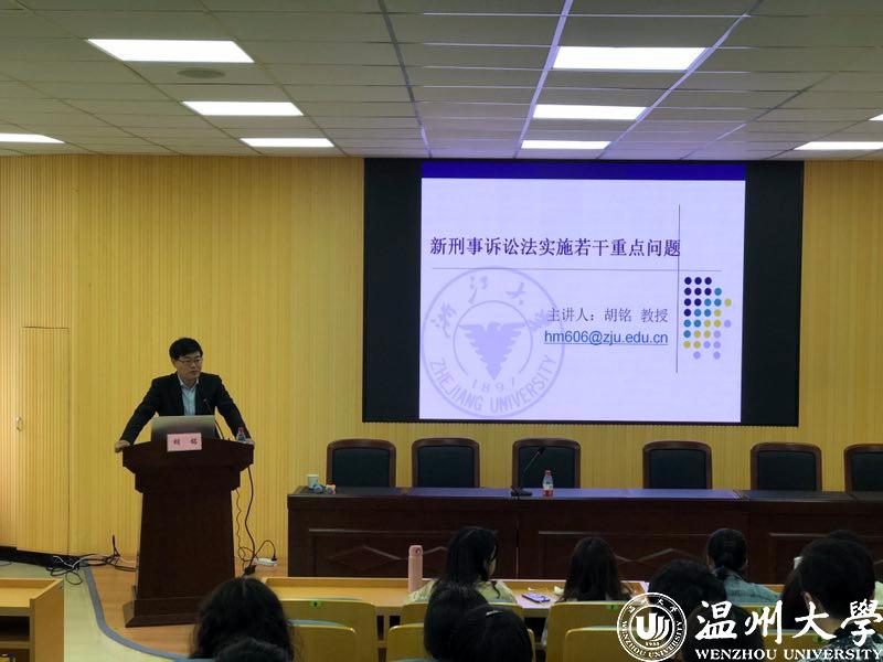 2019年4月30日上午8:10,浙江大学光华黄色视频 教授、博导、长江学者胡铭教授为黄色视频 师生作《新刑诉法实施若干重要问题》的学术讲座。法政学院实训中心主任周湖勇老师、法学系副主任谢丽珍老师携17法学学生聆听本场讲座。