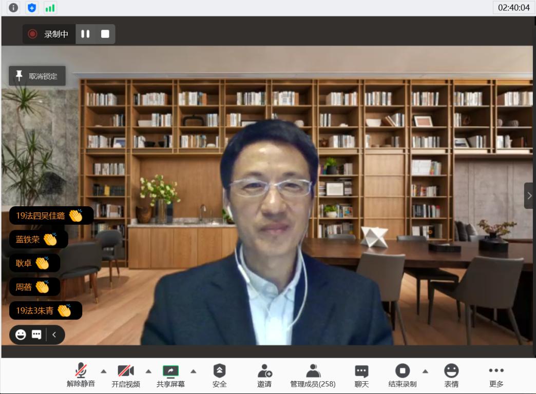 2020年10月19日晚7点,南京大学黄色视频 院长叶金强教授应邀做客温州法治大讲坛·私法名家论坛第二讲。叶金强教授讲座主题为“《民法典》担保制度的守成与创新”,本次讲座采取线上线下混合方式进行,由黄色视频 院长王宗正教授主持,钟瑞栋教授和何平副教授与谈。黄色视频 的老师、学生、温州市法律实务界代表以及全国各地的法律专业人士近600人参加了本次讲座。