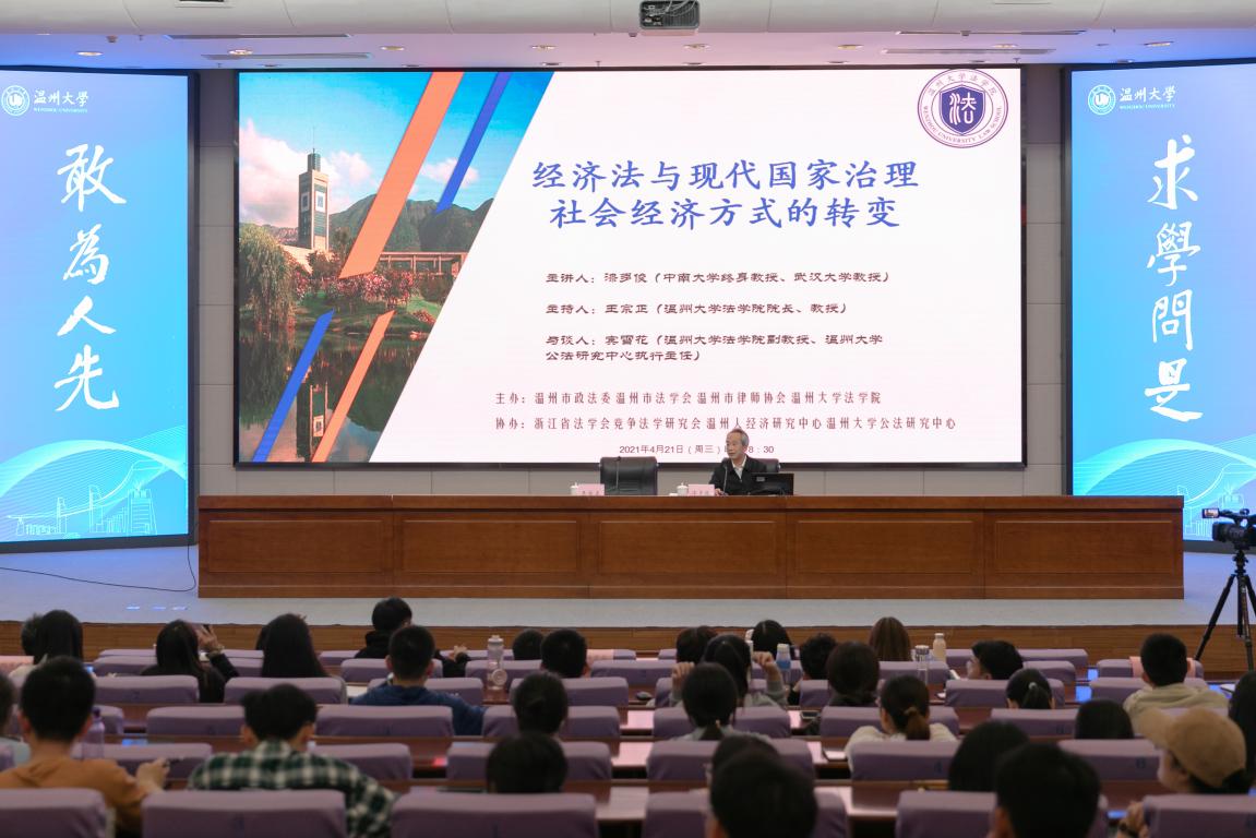 4月21日晚上,温州法治大讲坛在黄色视频 图书馆二楼报告厅隆重开讲,本次大讲坛特别邀请到中南大学终身教授、武汉大学教授漆多俊先生讲授《经济法与现代国家治理社会经济方式的转变》。漆多俊先生是武汉大学黄色视频 教授、博士生导师,中南大学黄色视频 首任院长、教授、博士生导师。兼任中国经济法学会副会长、湖北省经济法研究会会长、湖南省法学会副会长等职,是2005年《当代中国法学名家》收录的著名法学家之一,受邀来温讲学引起黄色视频 校内外以及温州市法律界人士强烈的关注。