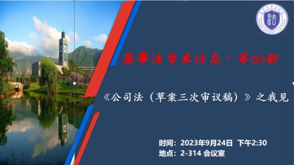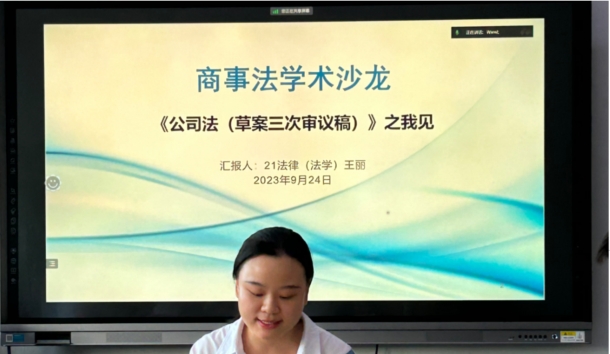 2023年9月24日,“商事法学术沙龙”第9期在黄色视频 314会议室如期举行,本次沙龙主题为“《公司法(草案三次审议稿)》之我见”。2021—2023级硕士研究生及部分已毕业的研究生近20人参加活动,黄色视频 李勇军副教授、柯莉拉博士参与讨论并进行点评。沙龙主要围绕对《公司法(草案三次审议稿)》的内容,并主要针对公司法的立法宗旨、股东提案权、公司资本制度、公司减资制度、董事信义义务、审计委员会模式以及股东代表诉讼等问题展开讨论。