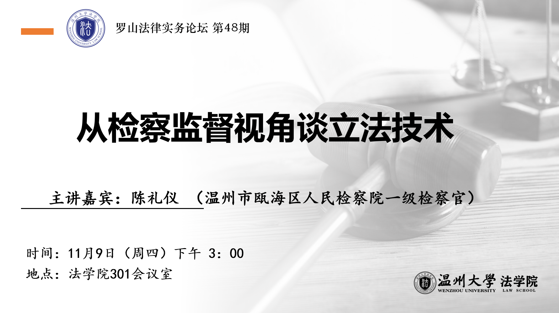 讲座预告丨罗山法律实务论坛第48期:从检察监督视角谈立法技术