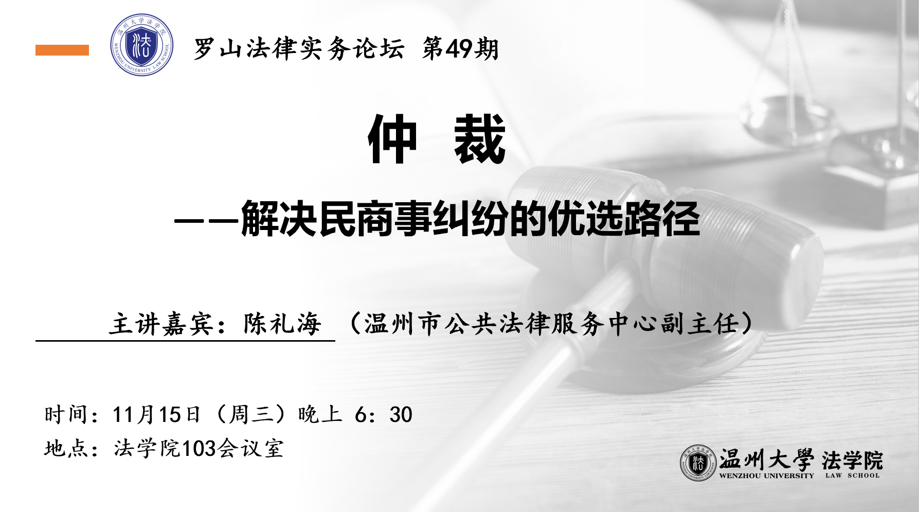 讲座预告|罗山法律实务论坛第49期:仲裁——解决民商事纠纷的优选路径