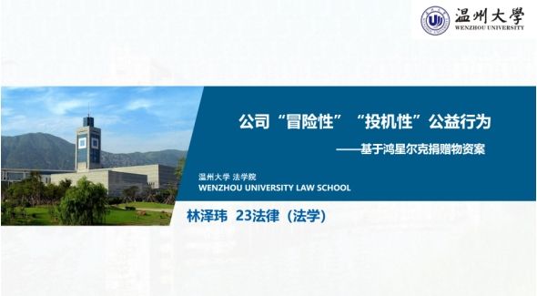 2023级研究生林泽玮同学以鸿星尔克为例,认为在公司面临大面积亏损时,捐赠巨额财产从事公益活动,从公司的营利性和商人理性的角度,这很可能是商人为了提高企业知名度和产品销量而进行的具有冒险性质公益“投机”行为。如果冒险成功,则公司可能扭亏为盈。对于此类名为公益实则营利的“机会主义行为”,是以牺牲债权人利益为代价的,需要进行严格限制;否则,不仅可能导致损害少数股东权益,而且容易引发不良示范效应,危害债权人利益。