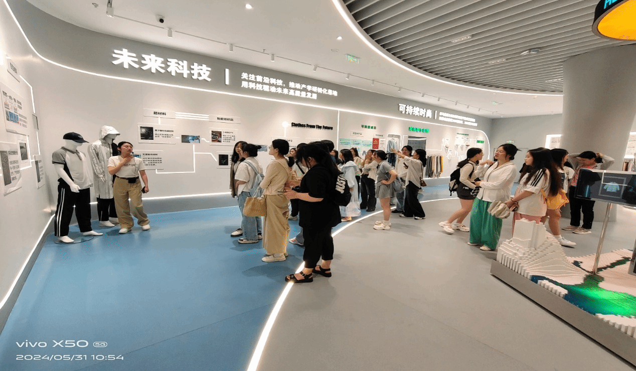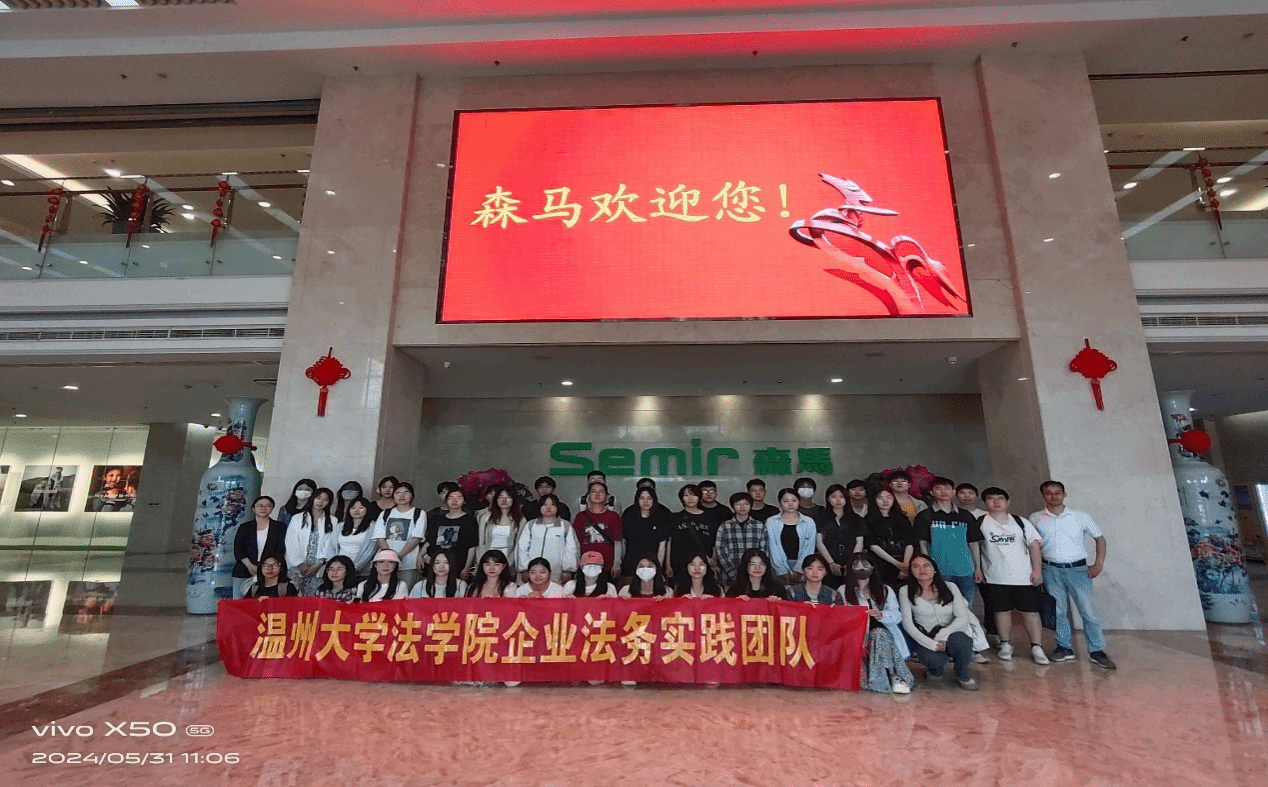 5月31日上午,组织学生前往浙江森马服饰股份有限公司考察交流。考察一行在工作人员的引导下,参观了公司的文化走廊,了解森马服饰的发展情况,工作人员还系统介绍了公司的主要产品类型、经典款式及外销合作情况,并在服装展示区进行现场体验。通过考察交流,同学们对森马集团的发展历程和公司的产品有了全面的了解,并对服装企业的法律实务有了一定程度的了解。