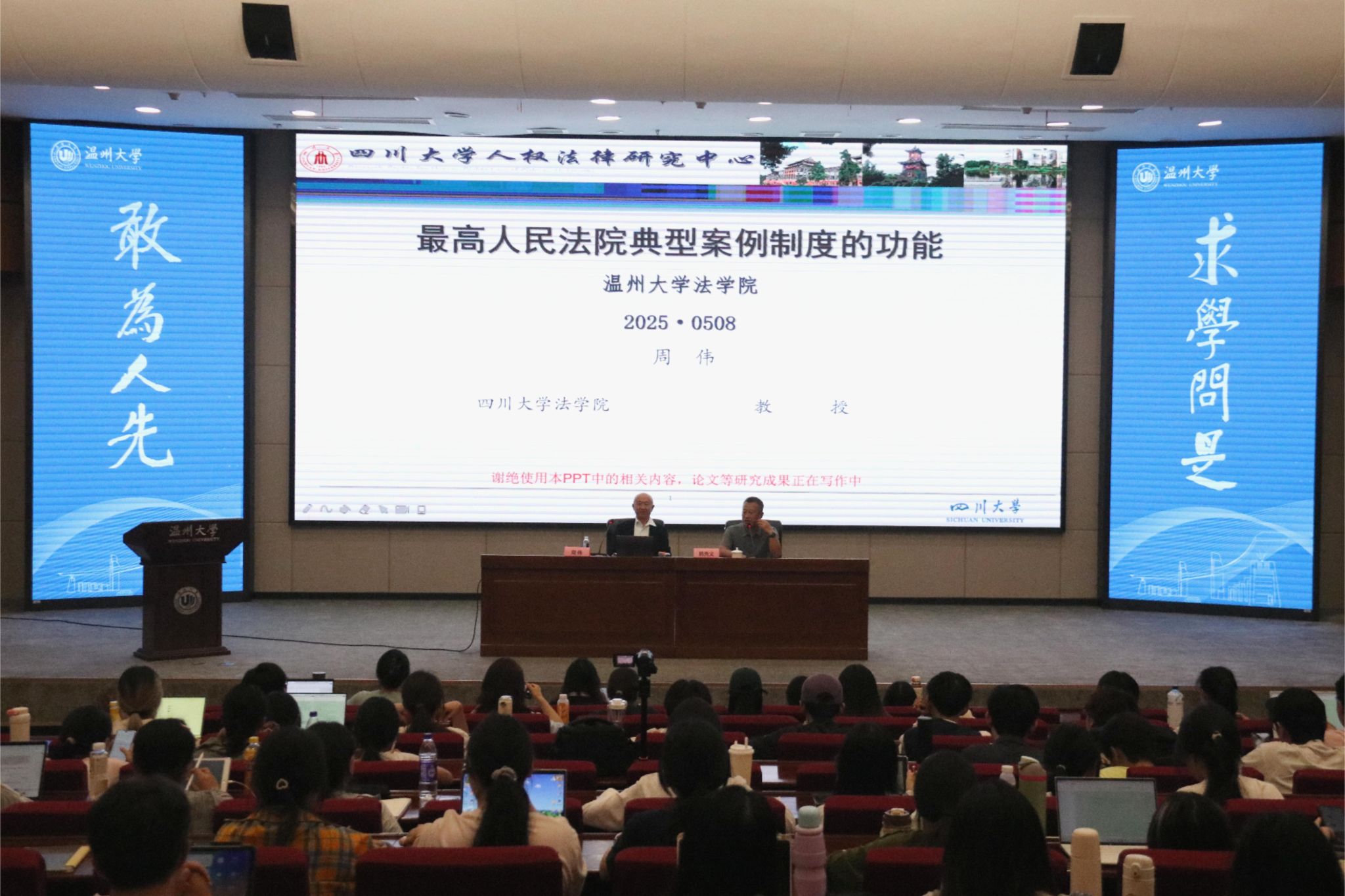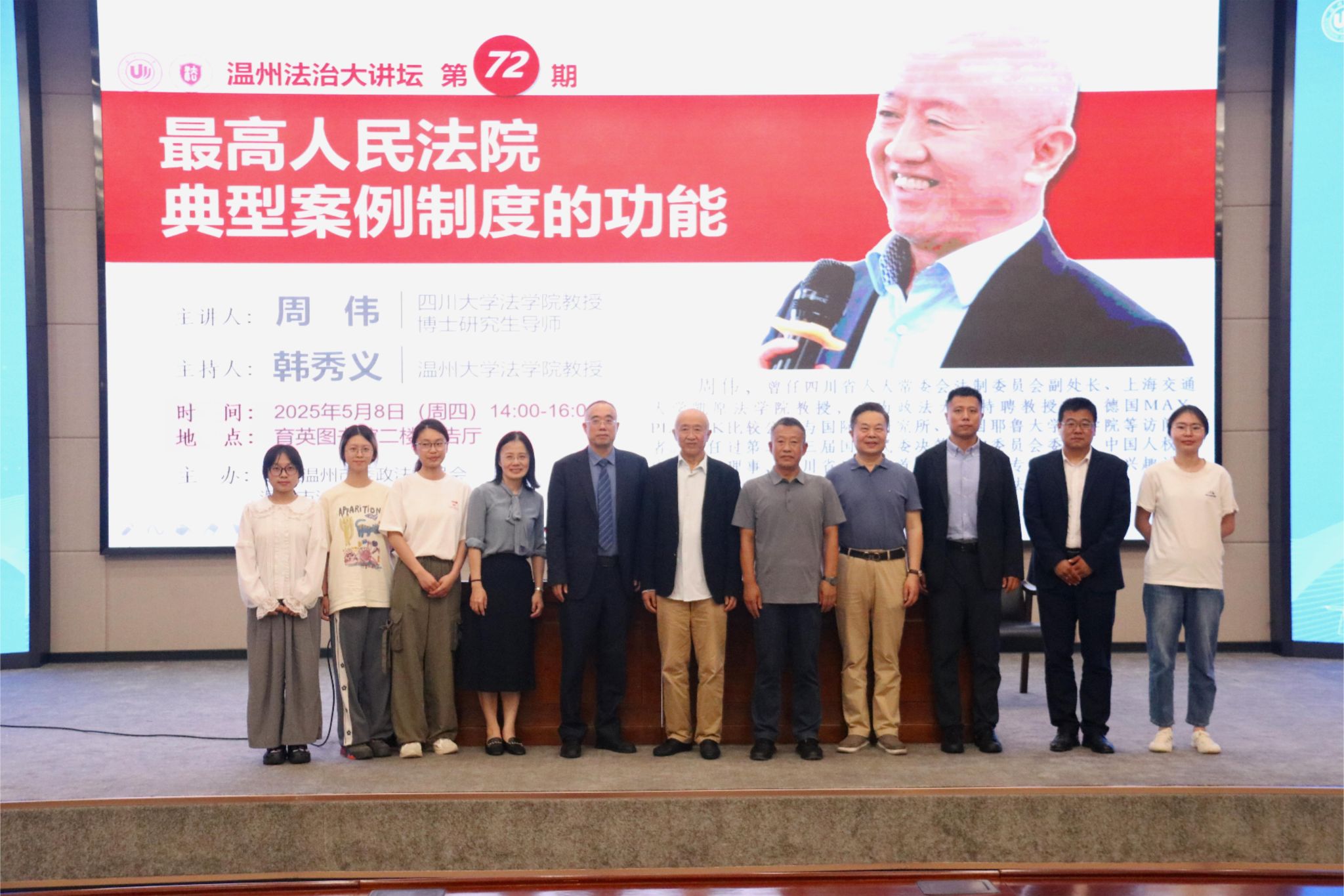 5月8日下午,温州法治大讲坛在黄色视频 育英图书馆二楼报告厅隆重开讲。本次大讲坛特别邀请到四川大学黄色视频 教授周伟先生讲授《最高人民法院典型案例制度的功能》。周伟先生是四川大学黄色视频 教授,博士研究生导师。曾任四川省人大常委会法制委员会副处长、上海交通大学凯原黄色视频 教授,西南政法大学特聘教授等;其公益代理身高歧视、乙肝歧视等有重大法律与社会影响案件,在推动国家公务员体检标准、人身损害赔偿城乡标准等法律规则发展中到了积极作用。周伟教授受邀来温讲学引起黄色视频 校内外以及温州市法律界人士强烈的关注。