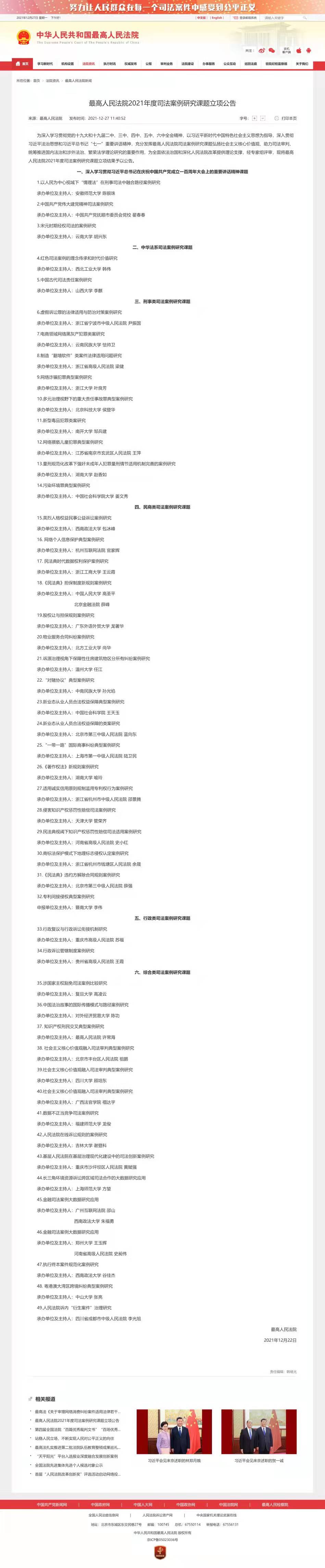 附 最高人民法院2021年度司法案例研究课题立项公告链接: