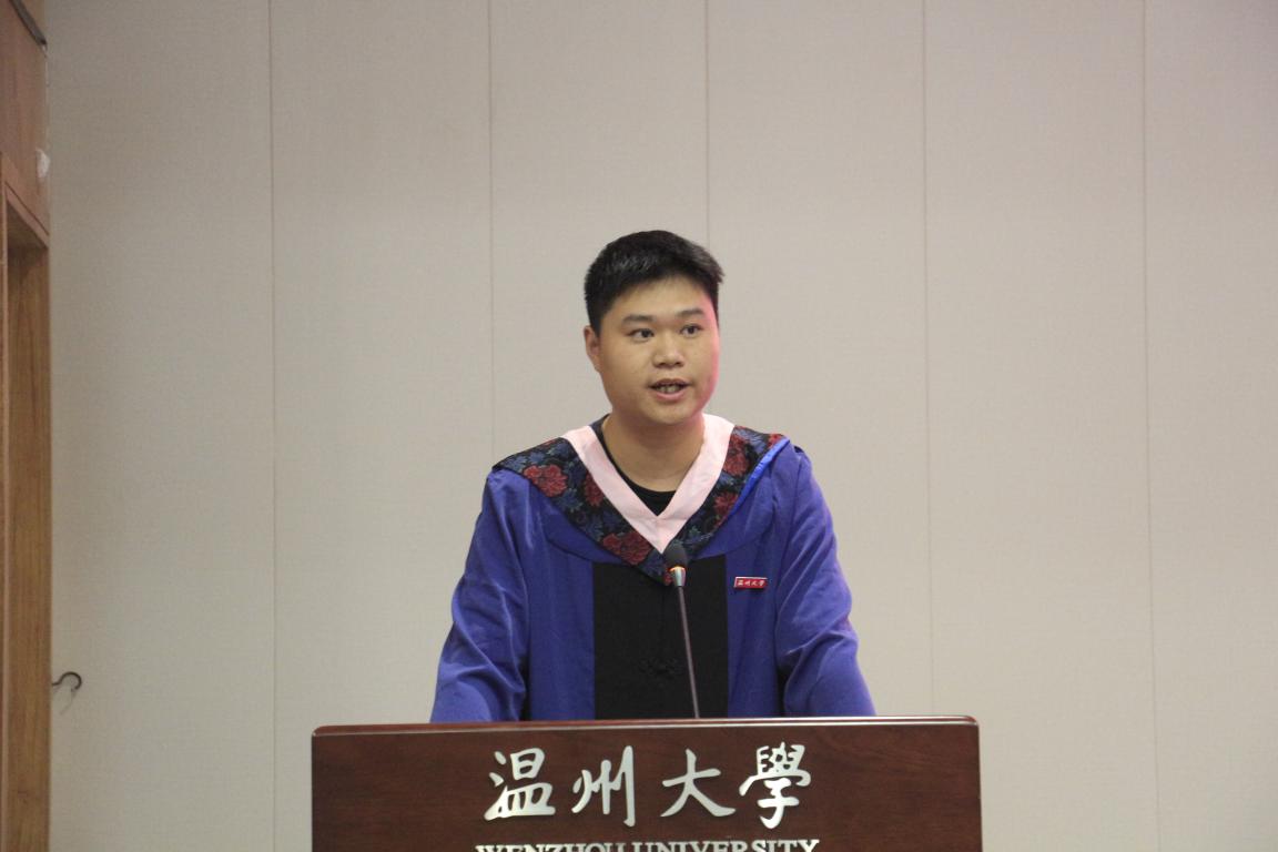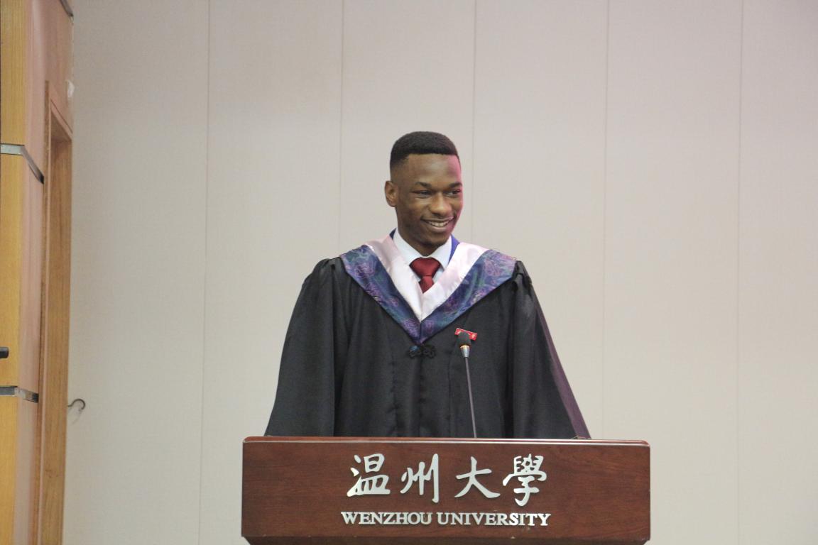 本科生毕业生代表陈倩倩、研究生毕业生代表钱伟、留学生毕业生代表Mungofa Tichaona Stanley依次发言,他们诚恳激昂,饱满生动,分享各自的青春故事,感恩母校的谆谆教诲,表达对母校的深深留恋和对美好前程的向往期待。
