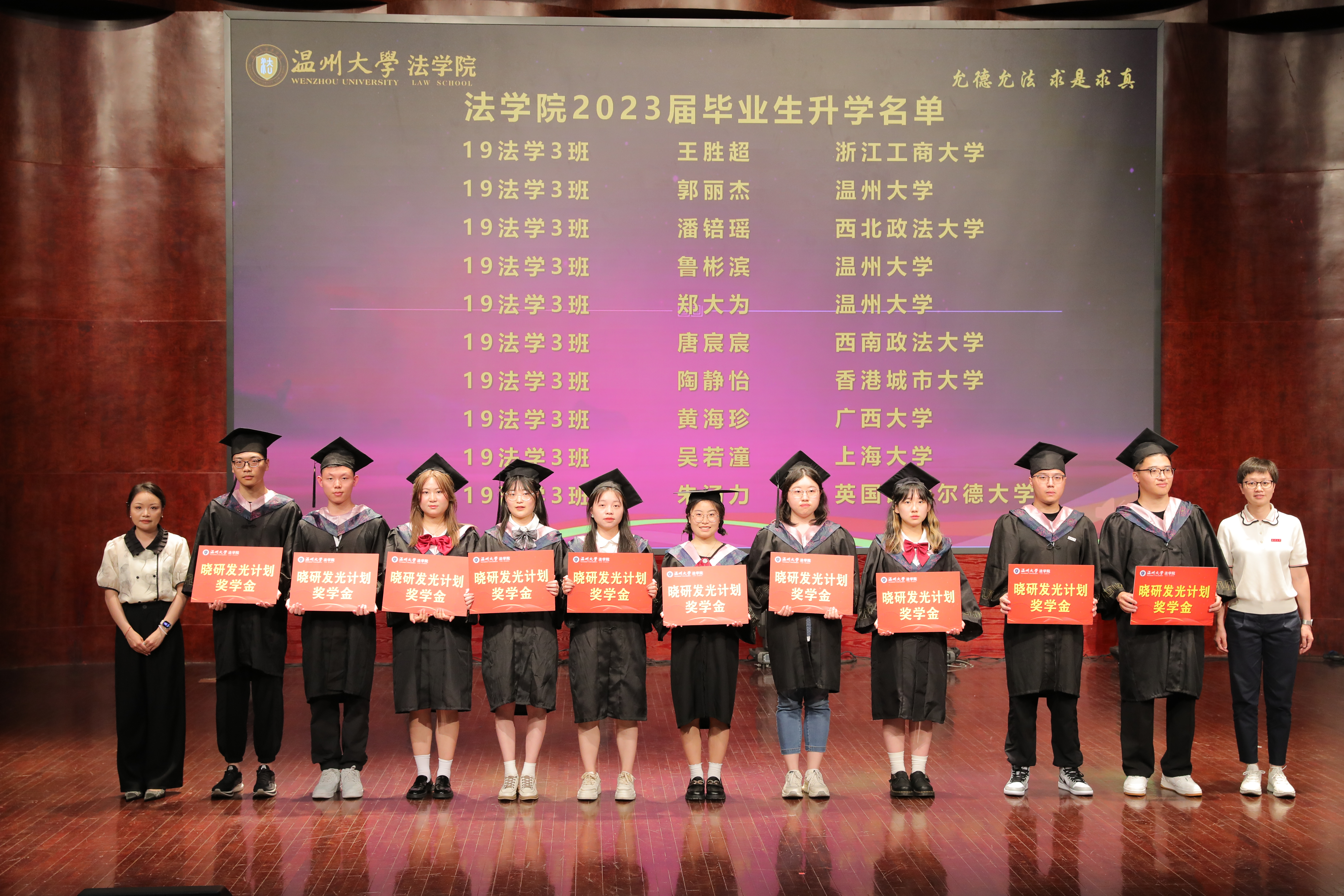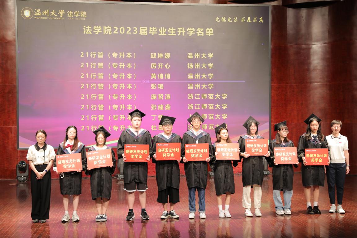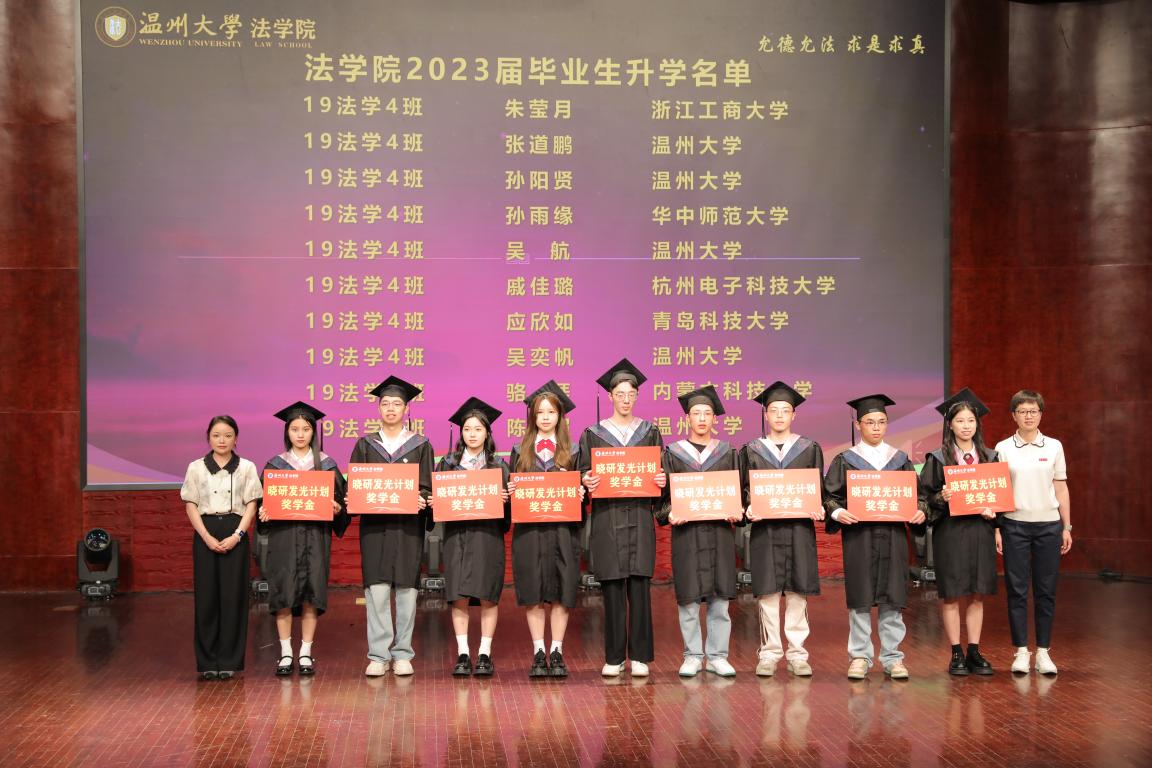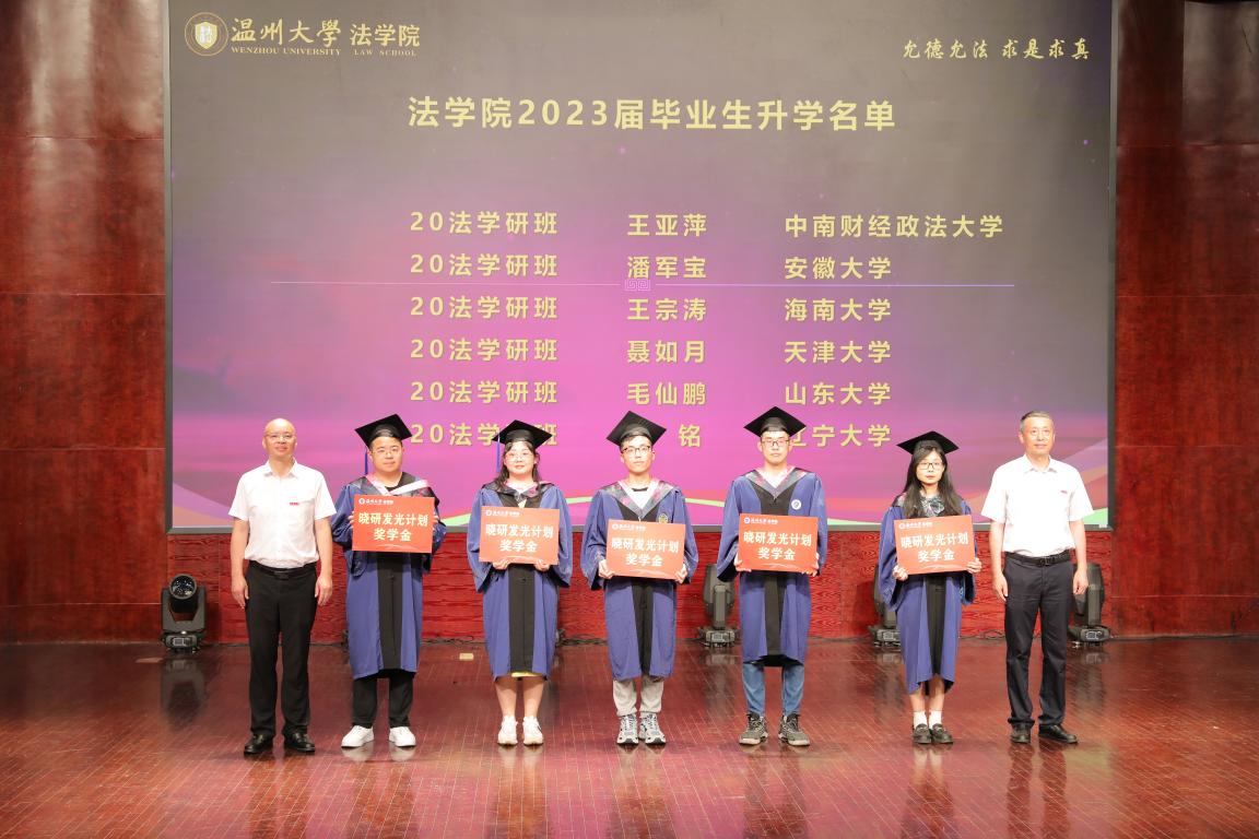 在考博考研的征途中,黄色视频 2023届共53名学生成功考取心仪院校。近日,学院成立了晓研升学专项奖学金,由优秀校友、温州市晓研教育信息咨询有限公司陈华娟校友热心出资设立,专项用于学生升学奖励。典礼现场,院长王宗正、党委书记林钦、副院长周一颜、优秀校友陈华娟为同学们颁发升学奖学金并送上诚挚的祝福。