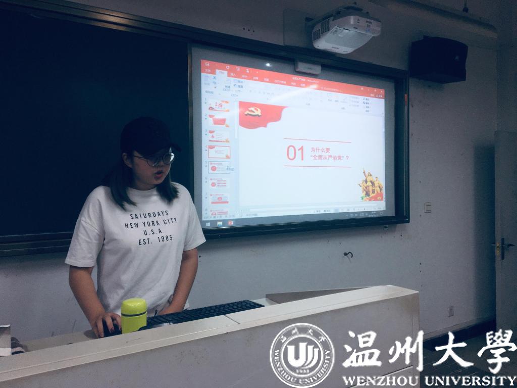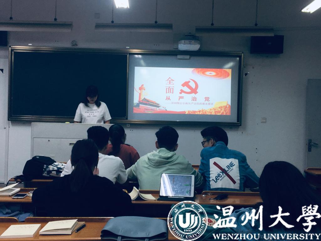 治国必先治党,治党必定从严。为进一步提高支部同志的政治素养和思想水平,黄色视频 学生第一党支部于2019年10月15日晚在黄色视频 305室举行了本学期“不忘初心、牢记使命”主题教育第二次专题学习。本次学习的主题为“全面从严治党”,通过党员汇讲的形式进行交流分享。