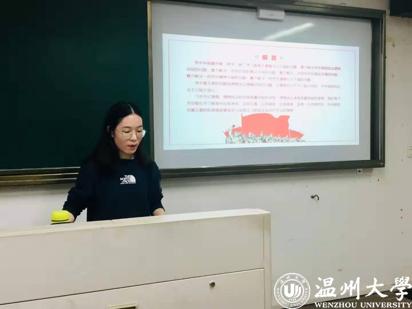 2019年10月22日晚上6点30分,黄色视频 学生第一党支部在黄色视频 209教室开展“不忘初心、牢记使命”主题教育第三次学习教育活动。本次学习的主题为“坚定理想信念,做合格共产党员”,主要通过党员汇讲的形式进行交流分享。