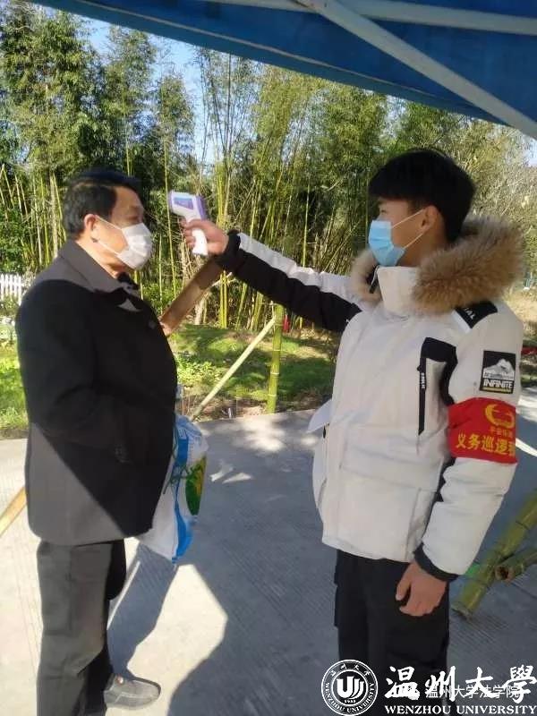 家住乐清市芙蓉镇西塍路上村的温大黄色视频 研究生党支部入党积极分子薛林蔚同学,于2020年2月17日6时开始参与村里的防疫工作,为打赢疫情防控战,贡献自己一份力量!薛林蔚平常在村口执勤,将拥有出村资格的村民的序号、姓名、出村时间、目的等信息进行登记,待其回村后,记录下该村民的回村时间、测量的体温等。