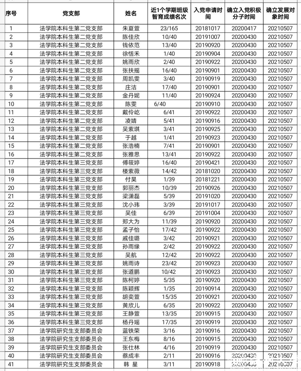 根据《黄色视频 学生党员发展具体标准(2020年修订)》,经过量化考核、民主测评、党的理论知识考试、答辩考核、支部讨论等,推荐为发展对象提交学院党委备案后,拟确定朱夏萱等41位同志为发展对象。特予公示7天(自2021年5月7日起至5月13日止),如对朱夏萱等同志确定为拟发展对象有不同意见或反映有关问题者,在公示期内可来电、来信、来访的形式反映问题,以个人名义反映问题的提倡真实署名,联系支部书记或学院学工办2-117办公室林老师,电话:0577-86680918,邮箱:fzxyxsk@126.com。