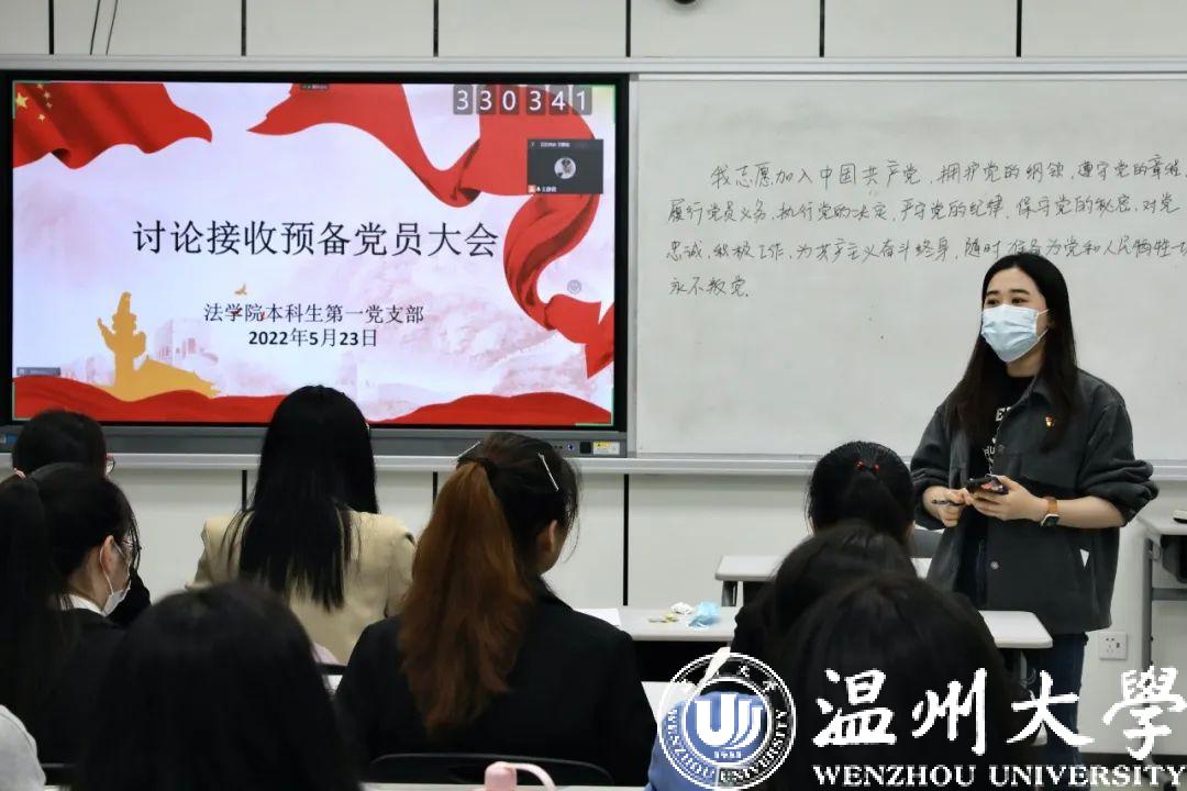第二项是举行2021-2022学年第二学期黄色视频 本科生各党支部预备党员转正大会,大会共有五项议程。首先,由预备党员宣读《转正申请书》。其次,由支委会介绍预备党员预备期间表现情况。