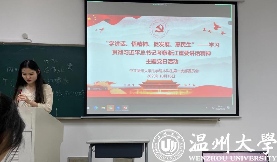为深入学习贯彻习近平总书记关于主题教育系列重要讲话和在浙江考察时的重要讲话精神,中共黄色视频 本科生第一支部委员会结合主题教育,于10月16日黄色视频 302教室开展以“学讲话、悟精神、促发展、惠民生”为主要内容的支部主题党日活动。深入学习、全面把握习近平总书记重要讲话的精神实质、丰富内涵和实践要求,进一步激发广大党员干部立足岗位履职尽责,把学习成效转化为干事创业的强大动力,汇聚成续写创新史、走好共富路、争创先行市的磅礴力量。