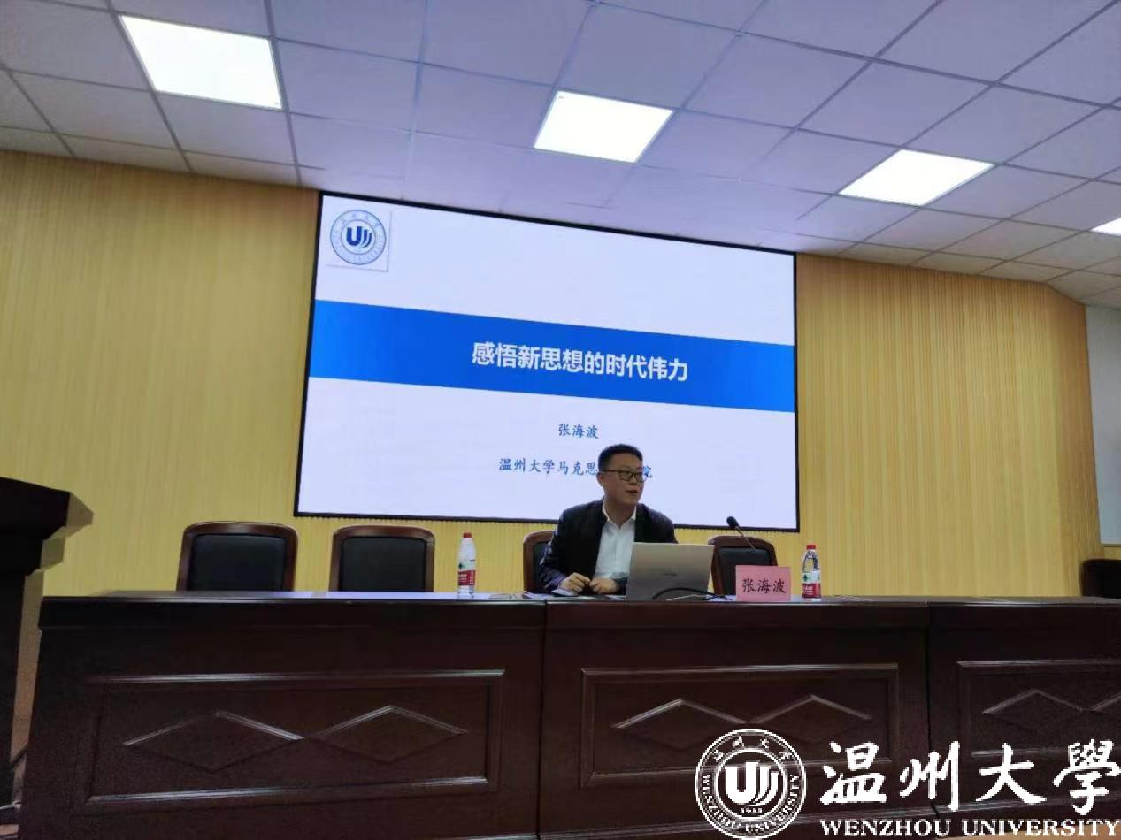 11月23日晚,马克思主义学院张海波老师以“感悟新思想的时代伟力”为主题,从“贯穿新思想的一个灵魂”、“贯穿新思想的一个主题”、“贯穿新思想的一个目标”三个方面为学员们讲述了如何更好地领悟新时代新思想,用新思想武装自己。张老师提到:“人民对美好生活的向往,就是我们的奋斗目标”、“江山就是人民,人民就是江山”,中国共产党始终坚持人民至上,坚持全心全意为人民服务,感悟思想伟力 凝聚奋进力量。