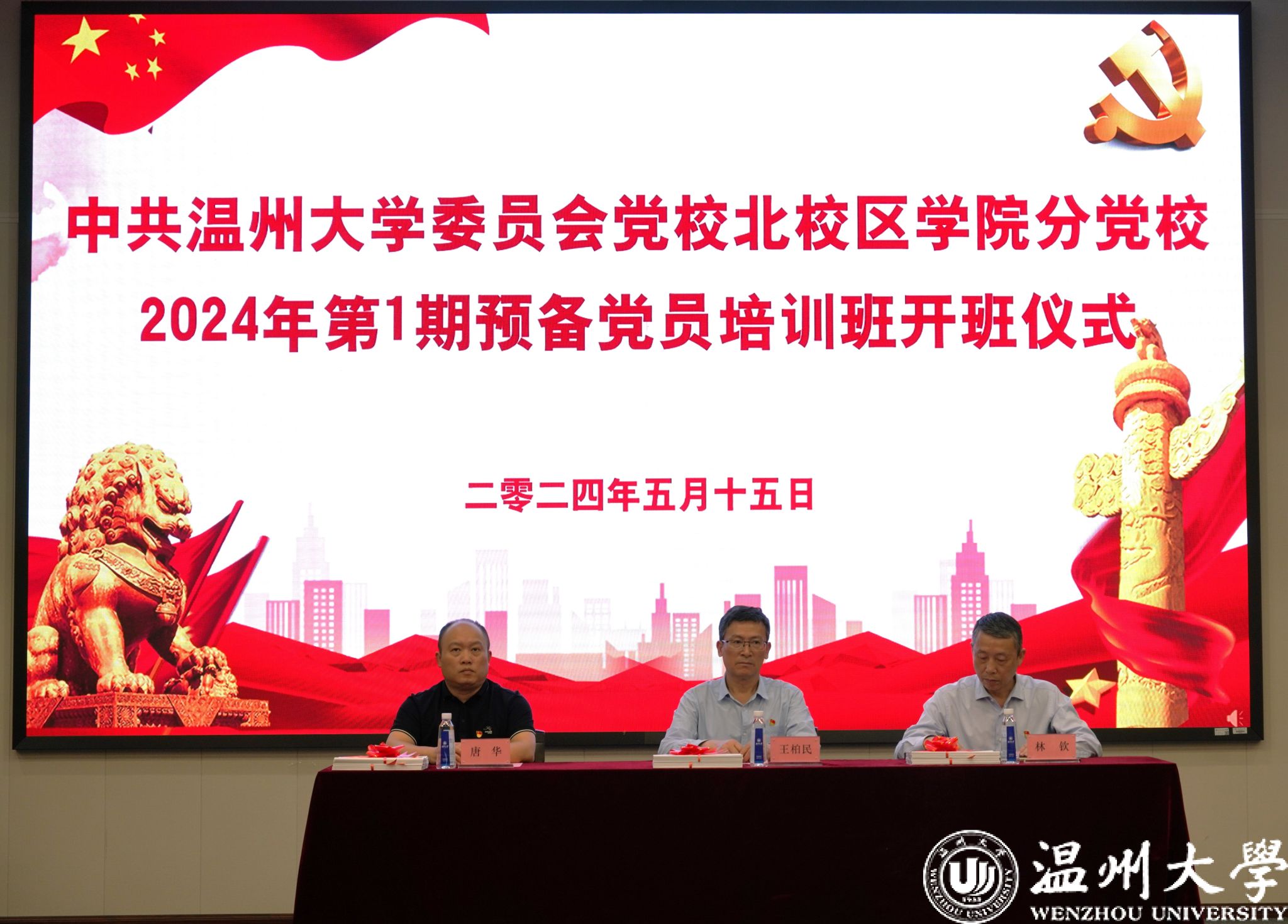 最后,预备党员培训班分党校校长王柏民老师、林钦老师、商学院党委副书记唐华老师为本次培训班学员代表赠送学习材料。