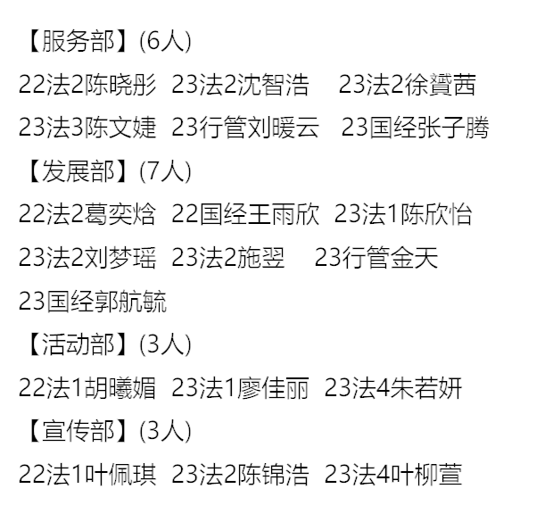 面试环节结束后,经过各部门负责人与指导老师的仔细商议斟酌,最终确定了19名入选者名单。至此,本次2023-2024学年黄色视频 党员服务中心招新活动圆满落幕!
