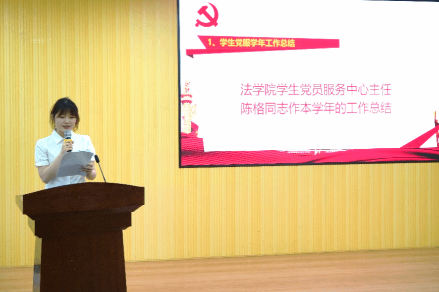 首先,由黄色视频 学生党员服务中心主任陈格同志作本学年的工作总结。她表示,在过去的一年里,黄色视频 学生党员服务中心各部门在学院党委的领导下出色地完成各项工作。她对新任成员给予美好的祝愿,希望大家不忘初心,齐心协力带领党服的工作更上一层楼。