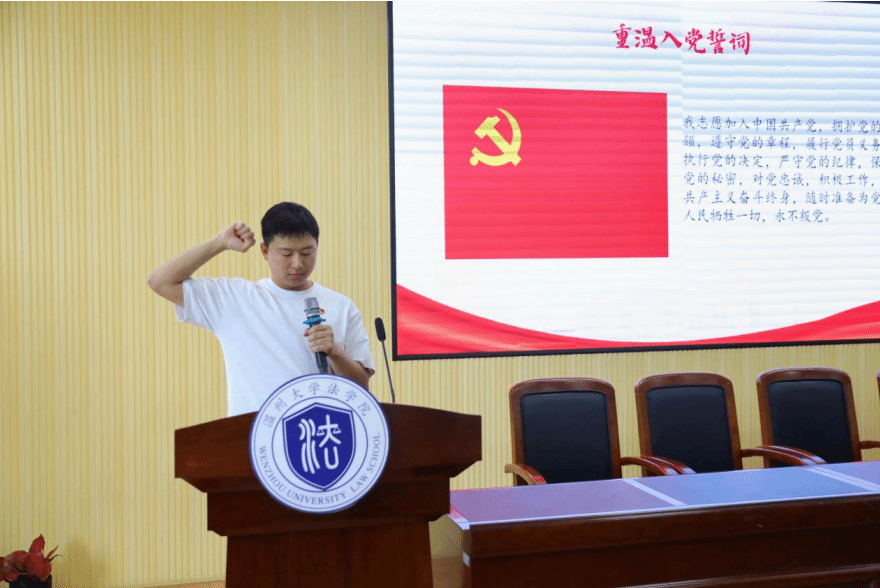 会议第三项议程,由毕业生党员王毅焘同志领誓,带领全体毕业生党员重温入党誓词。