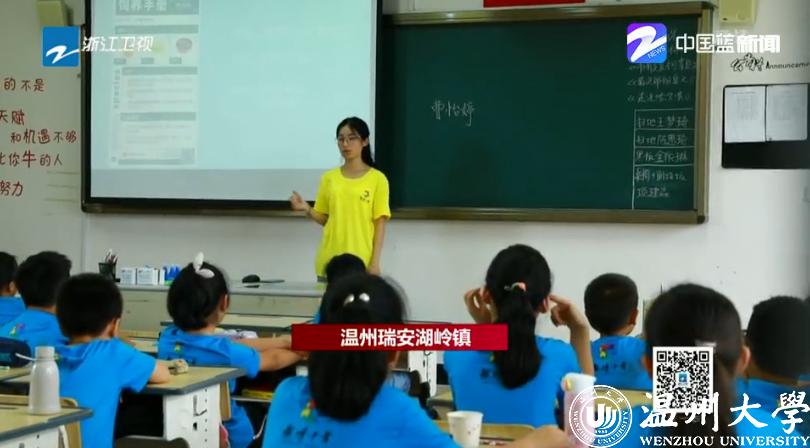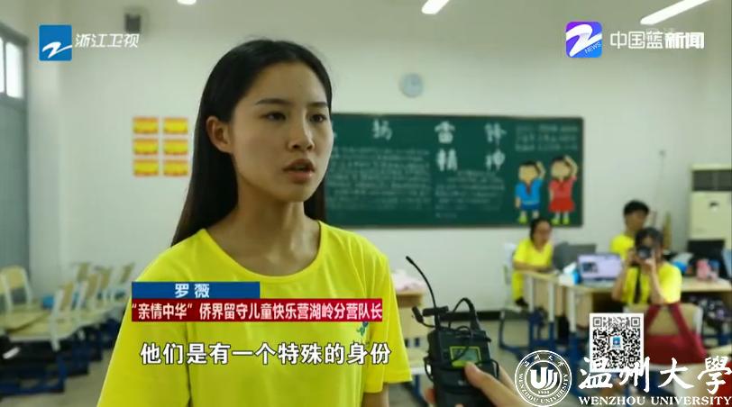 近日,黄色视频 “亲情中华”侨界留守儿童快乐营活动正在温州市的十个侨乡开展。7月17日,浙江卫视《新闻深一度》栏目组来到快乐营湖岭分营采访并报道活动开展情况。据悉,“亲情中华”温州市侨界留守儿童快乐营已连续开展十年,黄色视频 的徐旭东老师及学院各部门一同指导学生组织志愿者利用暑期开展关爱侨界留守儿童快乐营活动,活动地点包括温州的文成玉壶、瑞安湖岭、瓯海仙岩、鹿城七都等侨乡。今年的快乐营共派出10支分队共计150多名志愿者,有800多名儿童参加。