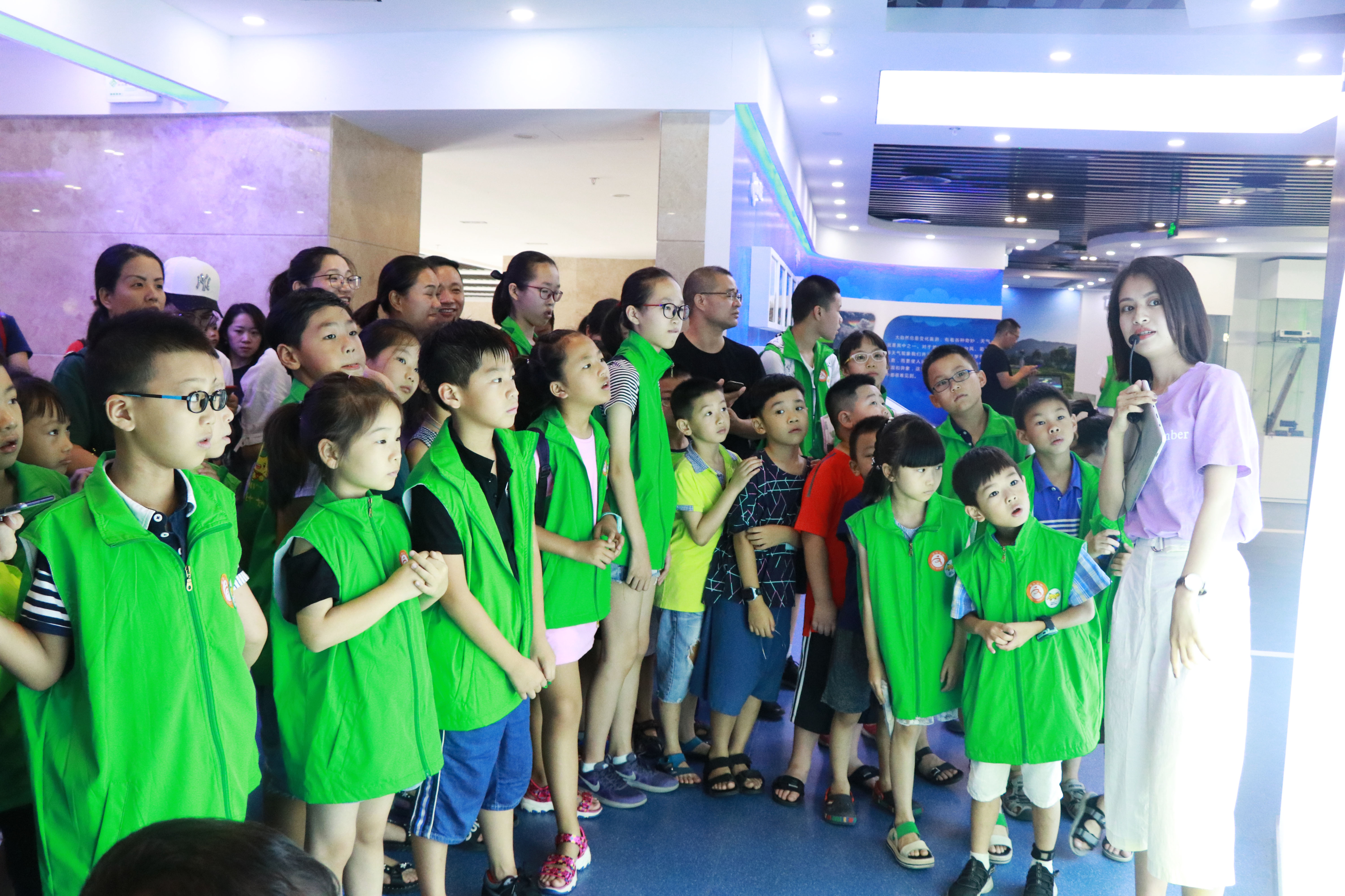 “台风来临时,小朋友们要留在室内,尽量不要外出。让爸爸妈妈关好窗户,检查阳台上有没有会被风刮落的东西,有的话一定要移除……”听着讲解员的防台注意事项,小朋友们纷纷点点头,并说一定会告诉爸爸妈妈,防御即将到来的“安比”台风。接着,小朋友们来到了“气象灾害预警”处,通过翻转方块,不仅让他们知道了气象灾害预警信号的图标,还让他们知道了不同颜色的气象灾害预警信号所表示的含义,加深了他们对气象灾害预警的理解。一旁的小朋友则在玩游戏答题的过程中,进一步加深了对气象灾害预警的记忆。科技与VR的结合,也同样引起了小朋友们的好奇心。他们戴上VR眼镜,坐在椅子上,驾驶着“宇宙飞船”,来到了恐龙世界。另一边,好几个小朋友排着队,纷纷体验了一把“虚拟气象主持人”,做了一回小小“天气预报员”。