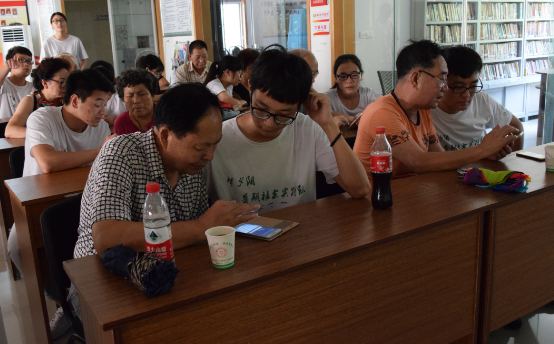 2016年7月20日下午,黄色视频 梦夕阳暑期实践队的队员们顶着烈日来到了繁荣社区,举办社区微信课堂,免费教授社区的老年人学习使用微信。