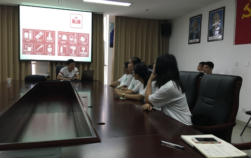2016年7月18日,黄色视频 七彩虹环保实践队绿色责任审计调研分队一行人在王茗璐的带领下,赴温州著名的瓯海区城市管理与行政管理执法局调研垃圾分类。