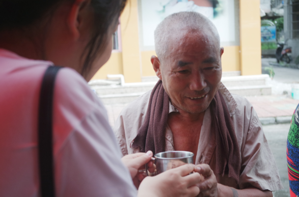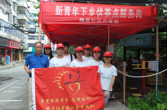 实践队的成员在访问了多名抗战老兵后,深刻了解到了我们如今幸福生活的来之不易以及奉献精神的重要性。在得知梅泉社区有乐于奉献的优良传统并且在夏日设有免费凉茶点后,同学们主动来到社区凉茶点帮助工作人员发放凉茶、清洗茶杯,受得了社区徐书记的好评。