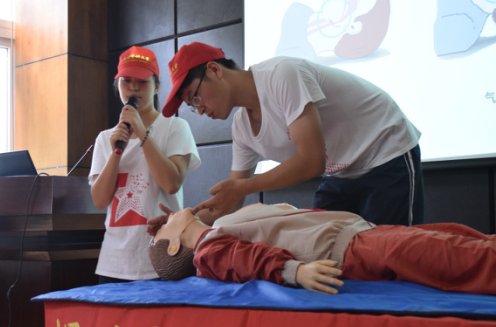 图 5在温医同学的帮助下,队员们进行了心肺复苏救护练习