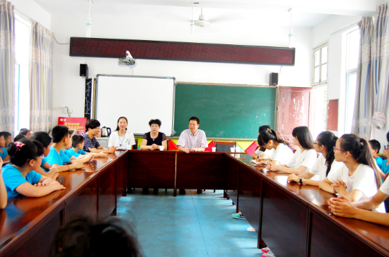 接着,胡主席提出了将"快乐学习,健康成长"这八个字作为本次活动的主题。胡主席指出为了契合本次活动的主题,要做到以下三个点:一是要特别关注"问题儿童"的身心健康,争取通过本次活动解决隔代教育的问题和自闭等带来的问题。并且在本次活动结束后,希望志愿者们能够进行连续跟踪和回访,持续关注那些"问题儿童"的生活状况,真正使那些孩子做到快乐成长;二是希望志愿者们在进行活动的时候能够牢记主题,不要偏离主题----快乐和健康,特别提出要注意安全问题,安全是活动永恒的主题,不管是孩子还是志愿者们都要牢记安全的重要性;三是要把周南分营的孩子们的档案建立好,要注明哪些问题已经解决,哪些问题还未得到完全的解决,为下一届的快乐营提供资料,使快乐营能够持续关注那些还有些问题的孩子们,为他们的快乐成长保驾护航。在座谈会结束后,胡主席还为孩子们和大学生志愿者分发了水杯,为这个酷暑带来一丝清凉。