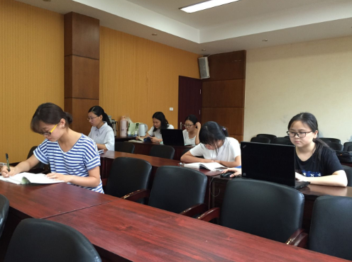小分队成员就自己的实践经历与身边队员们阐述了分工合作对一个团队的重要性,并通过队长发言点燃起了团队合作共同进步的热情。从一个人负责的部分到所有人集合在一起的前前后后,不管是查资料、找书籍、小组讨论还是解决问题,一个团队实践都需要每一名队员行动起来共同分担。就像白老师说得,"小事就要做到最好,大事我们一起做到最好!一起分工合作,懂得轻重缓急,发挥大家的智慧才能把很多很多的事都做到最好!"接下来小组成员就7本书籍开始轮流阅读。由于分队进行调研的特殊性和本调研课题的前沿性,队员们面临着全新的挑战。今天第一天需要在法政楼一楼报告厅进行材料收集与分析,以后几天要写出论文大概提纲,确定好实践调研方向,接下来的实践时间通过联系有关部门进行采访调研,最终完成绿色责任审计的调研。讨论期间,有队员提出了对论文的内容还有疑问,队长做了耐心的解答。翻阅完书籍,最后是拍照时间,绿叶小分队成员围着大红花队长。