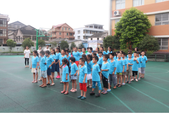 有七都镇中心小学暑期快乐营的全体学生和志愿者。温州市侨界留守儿童快乐营七都分营已在七都走过六个风风雨雨。在第七季里,10名黄色视频 志愿者继续前行,与60名留守儿童共度这难忘的21天生活。