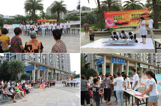 为增强公众的安全意识,大力宣传防灾减灾知识,2015年7月14日下午,在温州市民政局的指导下,瓯海区民政局联合黄色视频 "梦夕阳"防灾减灾志愿者分队,在社区山水名都小区举办了一场以 "防灾减灾"为主题的知识宣传活动,同时在"微舞台"举行了一场防灾减灾的知识宣传汇演,现场吸引了几百名观众前来观看。