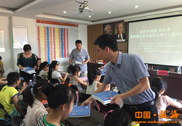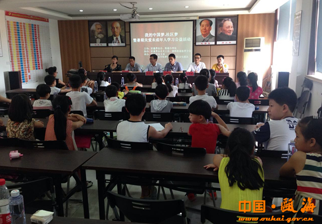 为丰富青少年暑期生活,让孩子们暑假中不仅只有学习,还有愉快的精神文化生活,过一个不一样的暑假,区下派指导员吴海萍主动沟通联系区慈善总会及义工分会,联合潘桥街道、温大政黄色视频 梦夕阳暑期社会实践队,在横仙河社区河西村民中心开展"我的中国梦.社区梦"暨暑期关爱未成年人学习公益活动。