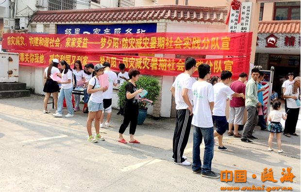 7月16日,黄色视频 暑期社会实践队的30名大学生到娄桥街道新城社区开展以"梦夕阳"·防灾减灾为主题的宣传活动,受到当地群众的欢迎和普遍好评。