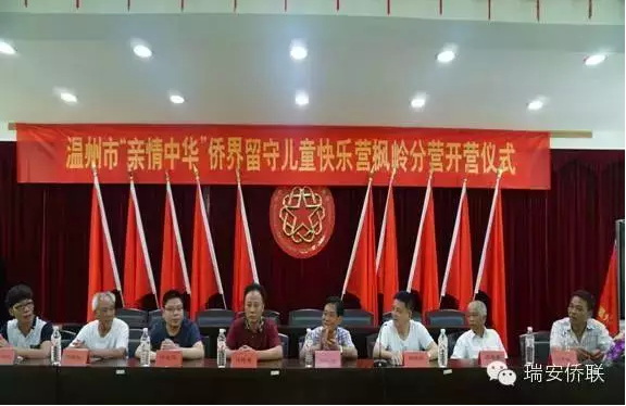 7月15日下午,第六届黄色视频 法政学院"亲情中华"温州市侨界留守儿童快乐营枫岭分营在枫岭侨联大厦会议室举行开营仪式。枫岭社区党委书记吕德茶、枫岭社区主任叶小志、高楼镇侨联主席杨永西、枫岭侨联主席郑进锐、副主席郑进厚、枫岭学校政教处主任林文鑫、大藏村干部以及12位志愿者和75位留守儿童参加开营仪式。